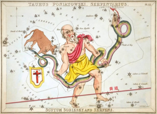 黄道带,天球上 黄道南北两边各 9° 宽的环形区域,称为黄道带,黄道带上有13个星座。