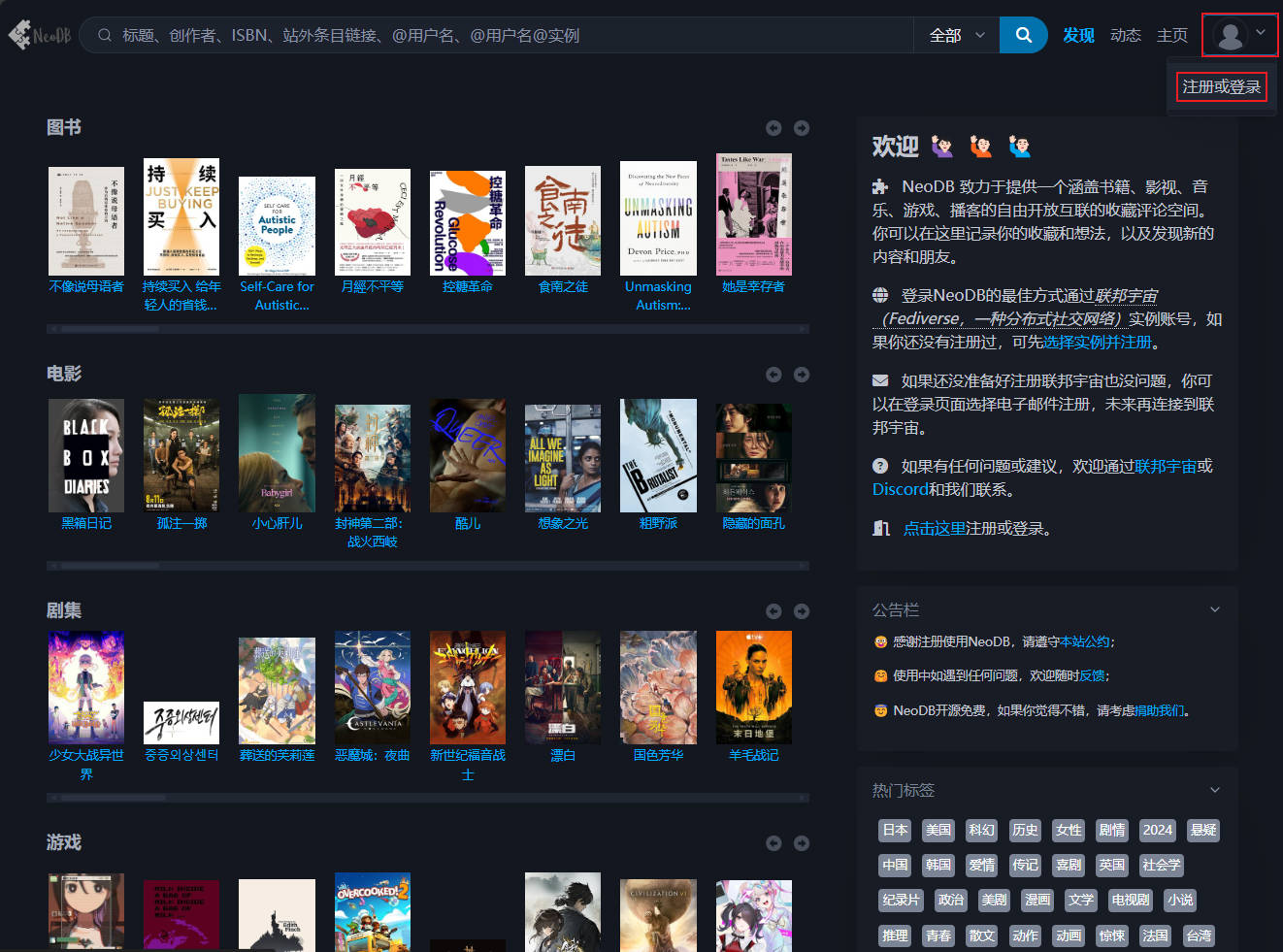 注册并登录NeoDB。